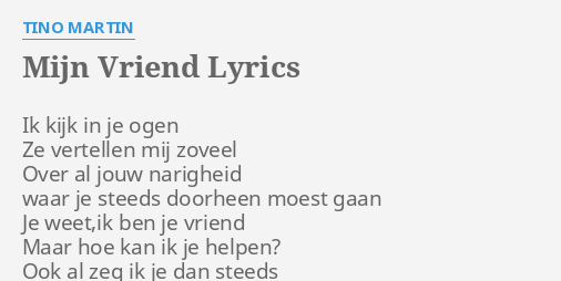 Weet waar je nu staat. Wil je tino martin op 8 juni 2019 live zien en horen in het olympisch stadion in amsterdam? Sing zij weet het by tino martin with lyrics on karafun. Kom je weer naar buiten? Dus ik ga gelijk pata, jakka iets te weinig money in m'n zakken maar dat maakt niet uit het maakt vandaag.